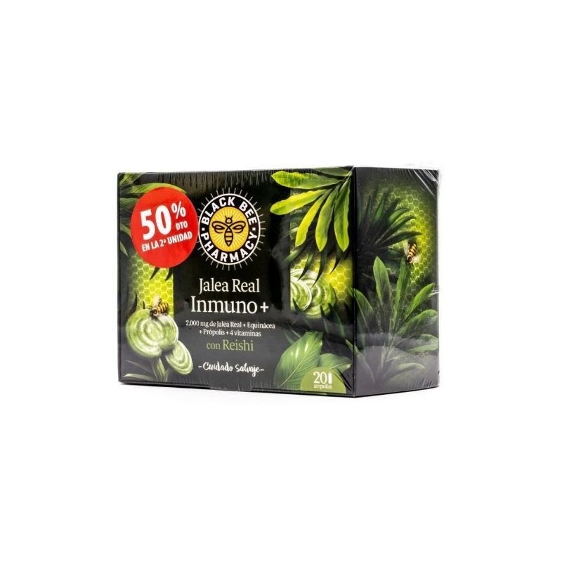 Black Bee Jalea Real Inmuno+ es un complemento alimenticio que combina las propiedades de la Jalea Real, el Própolis, el Reishi. Equinácea y 4 Vitaminas para ayudar a las defensas naturales del organismo.