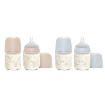 Biberones de vidrio de 120ml wonderland con tetina fisiológica sx pro de flujo lento. Estos biberones son de cristal y están fabricados en vidrio 100% reciclable. No absorben ni los olores ni los sabores. ¡la opción más sostenible! la tetina sx pro de flujo lento resulta perfecta para los primeros días del bebé, también para las tomas de agua y otros líquidos más adelante.