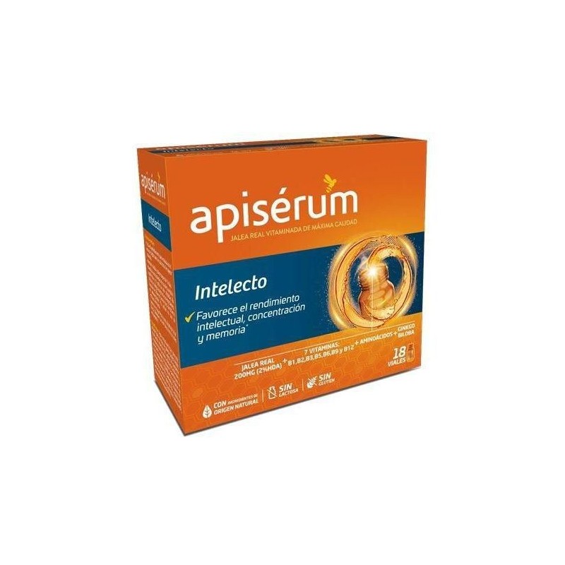 Apiserum Intelecto 18 viales favorece el rendimiento intelectual, concentración y memoria.