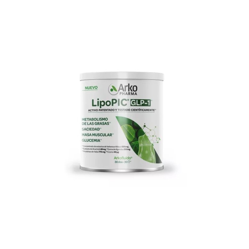 Arkofluido® lipopic® glp-1, desarrollado por arkopharma, es un complemento nutricional elaborado con extractos concentrados de plantas seleccionadas por su acción sobre el metabolismo energético y el control del apetitoSu fórmula se inspira en los mecanismos fisiológicos relacionados con la hormona glp-1, implicada en la regulación de la saciedad y la gestión de la glucosa, con el objetivo de ayudar a reducir la ingesta calórica y apoyar los procesos de control del pesoGracias a su presentación en formato bebible (ampollas), ofrece una absorción rápida y una dosificación prácticaEstá pensado como un apoyo para personas que desean gestionar su peso corporal, mejorar sus hábitos alimentarios o complementar un programa de dieta equilibrada y ejercicio físicoComo cualquier complemento alimenticio, su eficacia es mayor cuando se integra dentro de un estilo de vida saludable y no sustituye una alimentación variada ni tratamientos médicos prescritos.